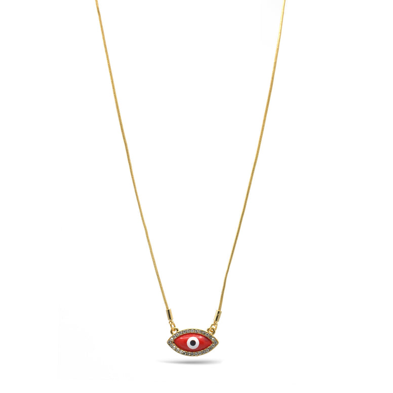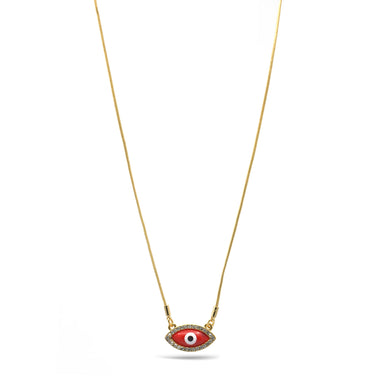 GOLD RED EVIL EYE PENDANT SHORT NECKLACE # HNN90663GD