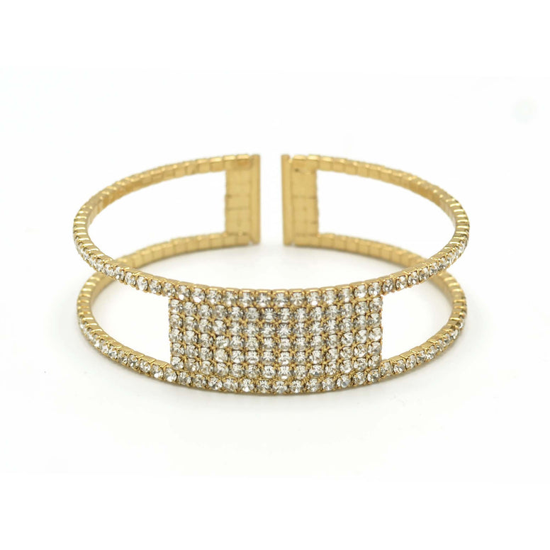 GOLD RHINESTONE CRYSTAL COIL MEMORY WIRE BRACELET#83769CR-G