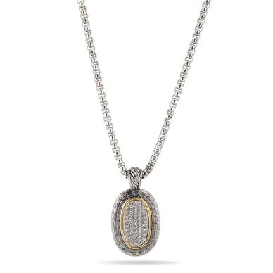 TWO TONE PAVE CRYSTAL WITH ENGRAVED DOUBLE SIDED PENDANT NECKLACE# 93013EH-TT