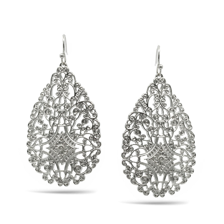 SILVER FILIGREE CRYSTAL TEARDROP EARRINGS # ADX6802387