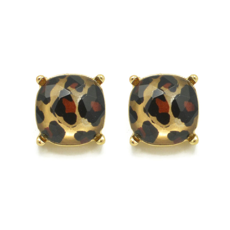 GOLD/BROWN BIG SQUARE STUD EARRINGS # HNE90740BRW