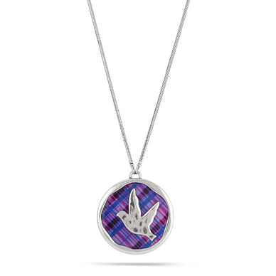 Adjustable Necklace With A Larger Disc Pendant This Features A Mother-Of-Pearl Disc With Plaid Design And Bird Overlay The Disc Measures 5Cm/50Mm The Back (Not Pictured) Is Decorated With A Bird Cut-Out 41Cm/16 Inches To An Adjustable 49Cm/19 Inches