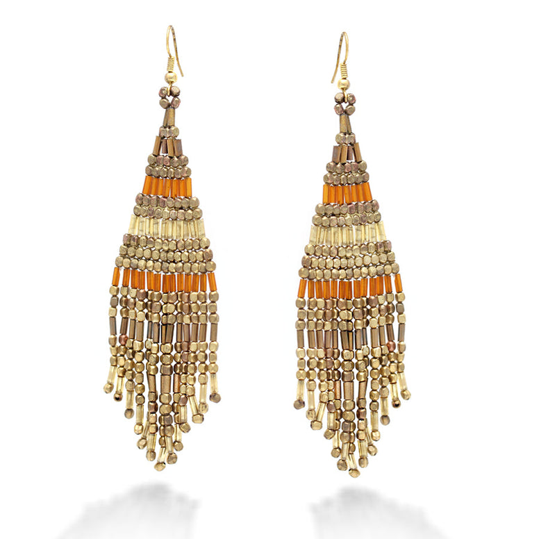 Gold-Tone Antique Brown Natural Seed Bead Earrings