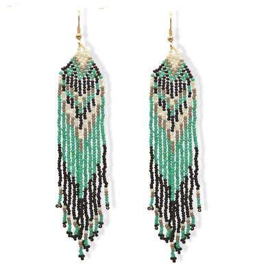 Turquoise, Black, and White Bohemian Seed Bead Long Tassel Earrings #SH-ER-1198(TD19)