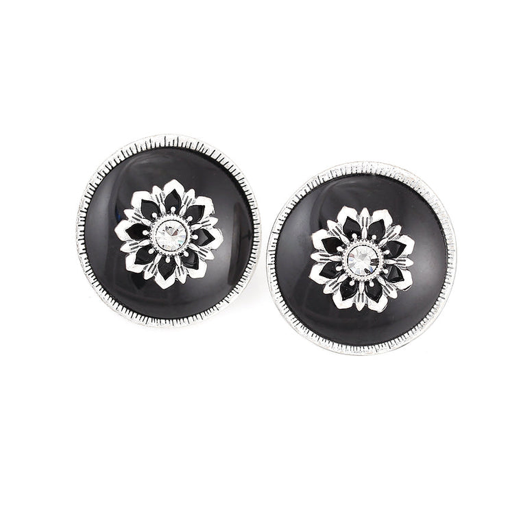 Silver-Tone Metal Black And White Crtstal Earrings