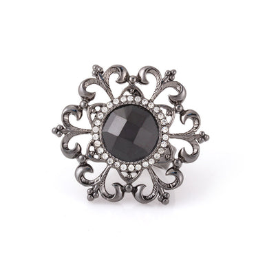 Hematite-Tone Metal Balck And White Filigree Adjustable To Fit All Sizes Ring