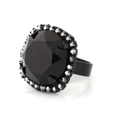 This Black Faceted Crystal Adjustable Ring is a versatile and stylish addition to any jewelry collection. The faceted crystal adds a touch of elegance, while the adjustable design allows for a comfortable and customizable fit. Perfect for any occasion, this ring is sure to make a statement and elevate any outfit.