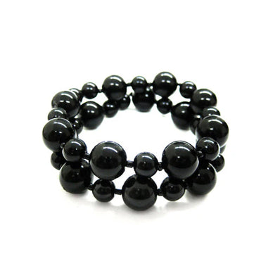 Black Glass Double Strand Stretch Bracelet Set Of 2Pcs