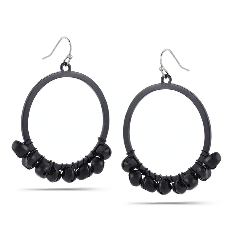 Black-Tone Metal Round Drop Earrings