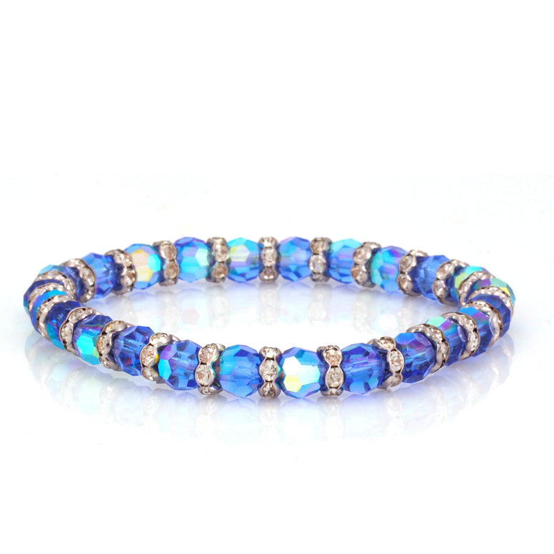 Rhodium-Tone Metal Blue Crystal Beads Stretch Bracelts