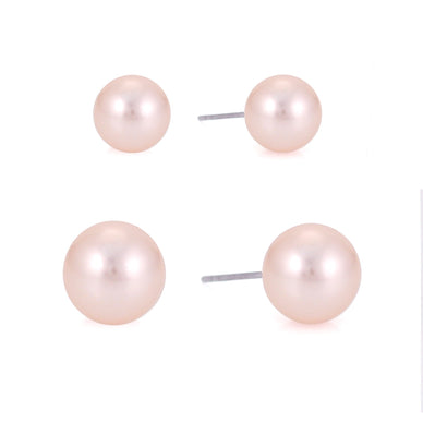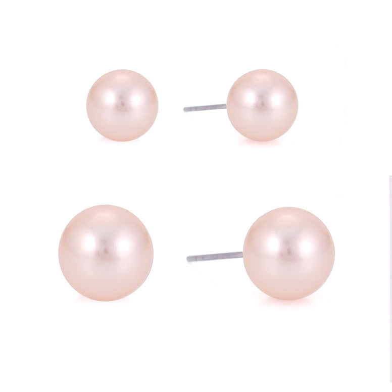 Silver-Tone Metal Set Of 2 Champagne Pearl Earrings