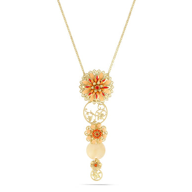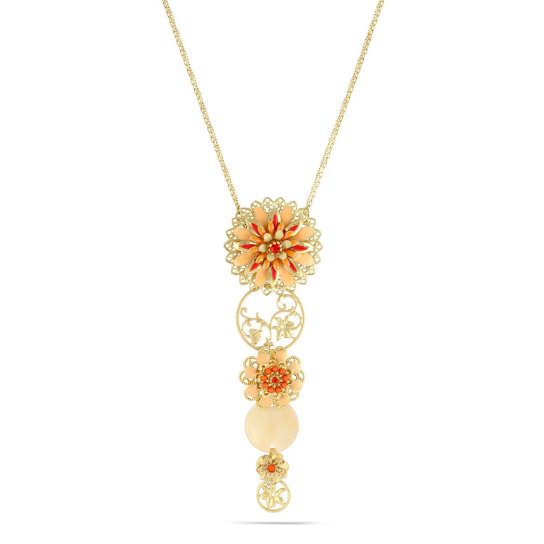 Gold-Tone Metal Coral Peach Enamel Filigree Necklace