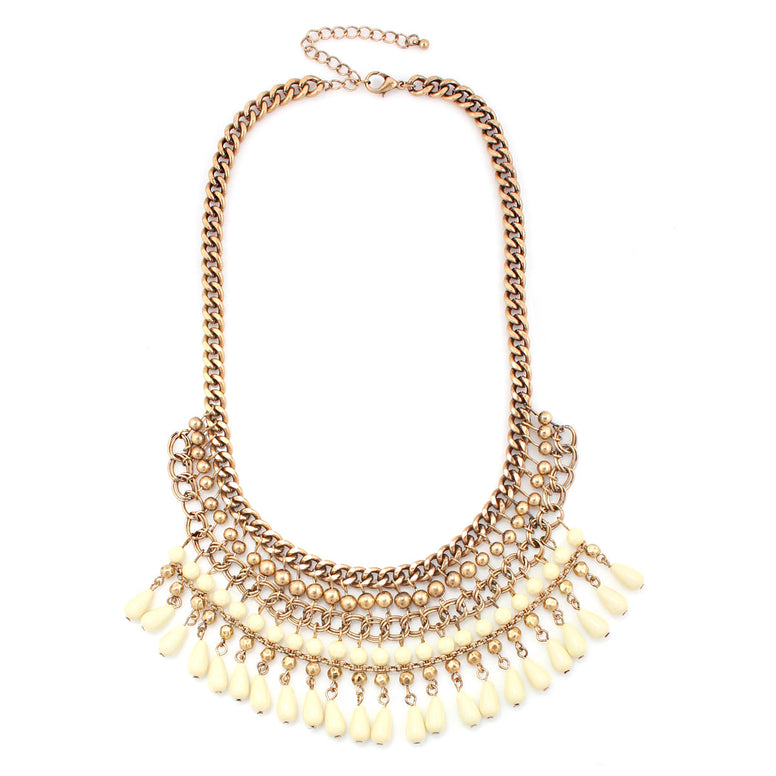 Gold-Tone Metal Creaml Ethnic Cleopatra Necklace