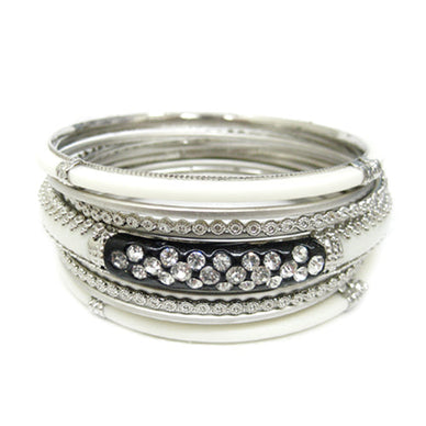 Fabulous Black Set Of 9Pcs Silver Bangles
