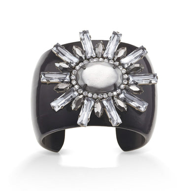 Silver-Tone Metal Faceted Crystal Black Cuff