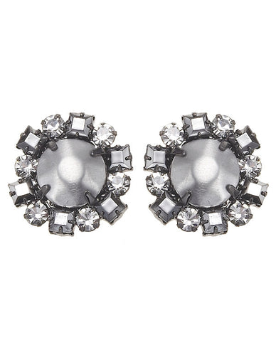Silver-Tone Metal Faceted Crystal Stud Earrings