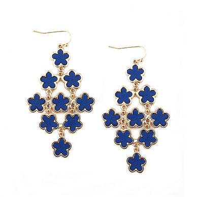 Royal Blue Five Leaf Flowers Bouquet Gold Earrings