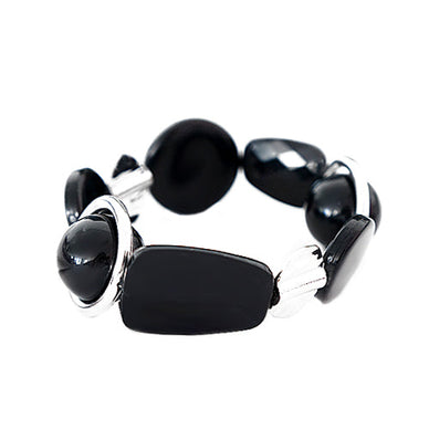 Black Multi Bead With Silver Metal Stretch Bracelet