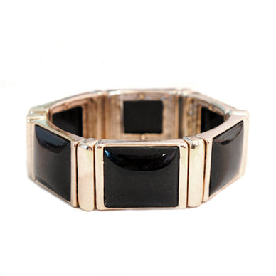 Chic Black Rectangle Bead Gold Stretch Bracelet