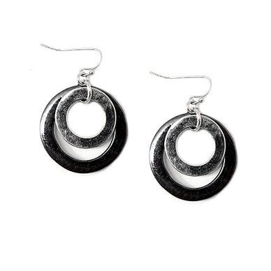Silver And Hematite Open Double Round Earrings