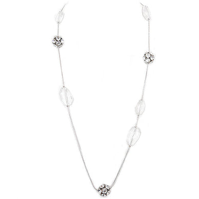 Clear Cut Bead With Fireball Silver Long Necklace