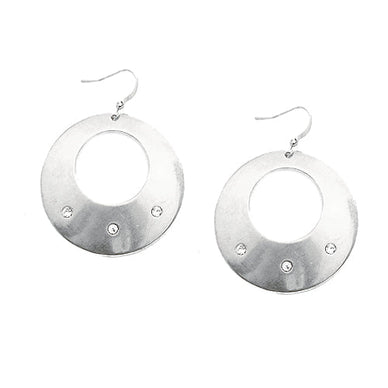 Open Round With Rhinestone Matt Silver Earrings