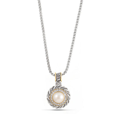 Glass Pearl Accent With Clear Rhinestone Two-Tone Cable Necklace