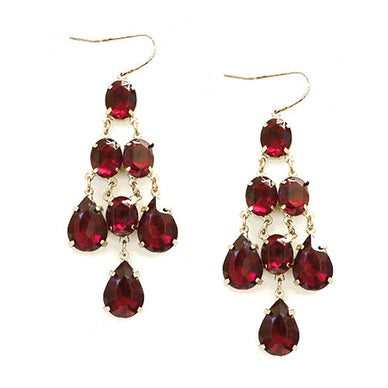 Red Teardrop Glass Bead Gold Chandelier Earrings