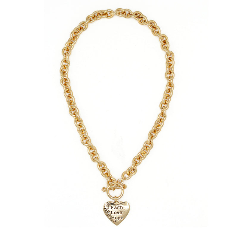 Silver Chain Necklace With "Faith Love Hope" Text On Heart