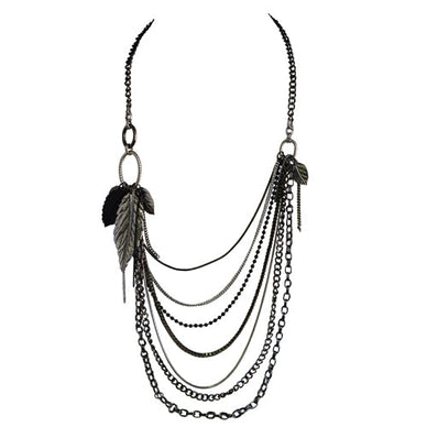 Grey And Black Chain Necklace With Grey Metal Leaves