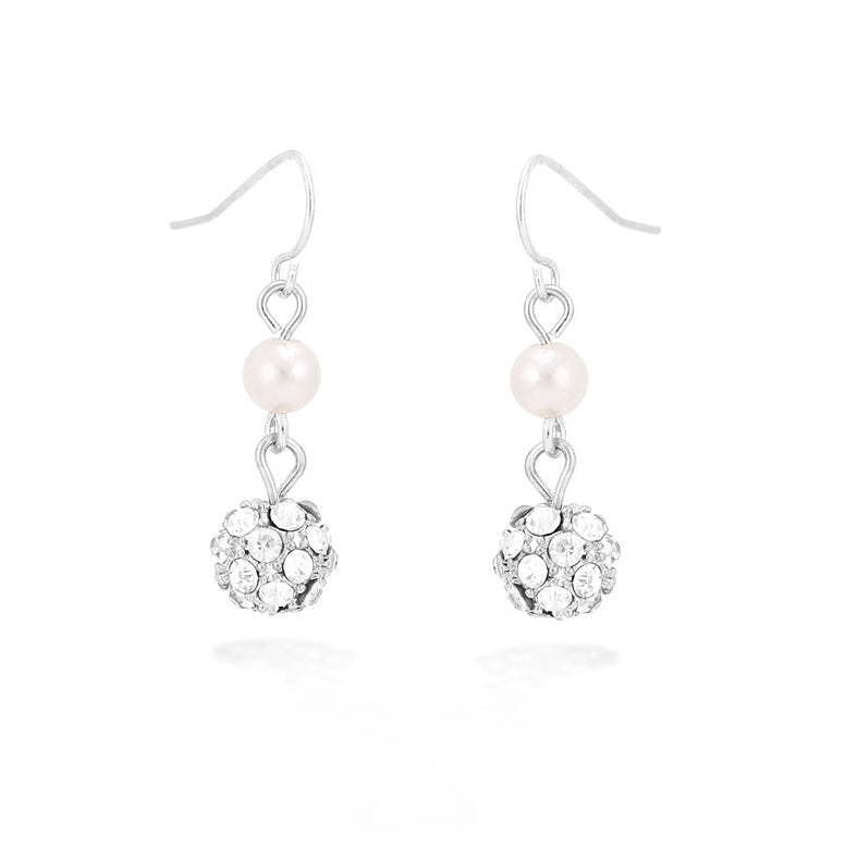 Silver-Tone Crystal Pearl Earrings
