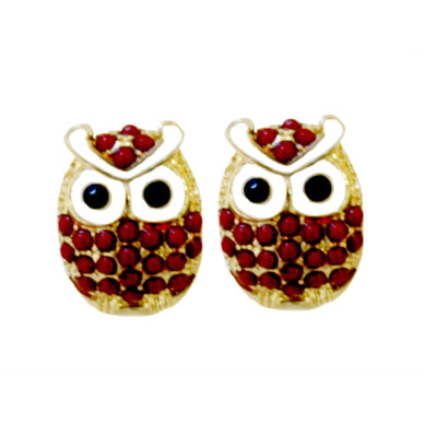 Gold And Red Owl Earrings