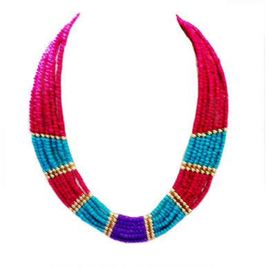 Fuchsia, Turquoise And Purple Indian Beaded Bib Necklace