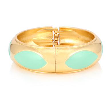 Gold Metal Mint Enamel Hinged Bracelet