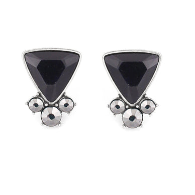 Silver Plated Oxide Black Color Glass With Hematite Earring