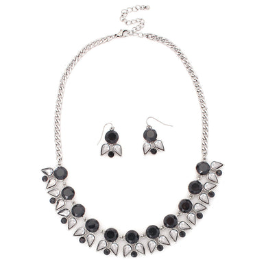 Silver Tone Black Stone With Hematite Silver Necklace Earring Set