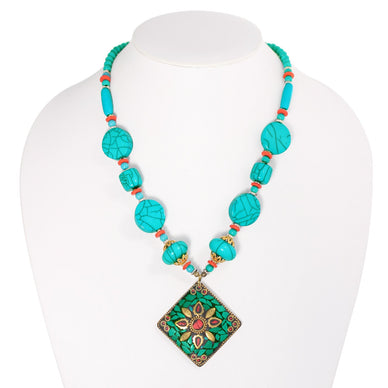 Gold-Tone Metal Turquoise Beads And Pendant Adjustable Lobster Claw Closure Necklaces