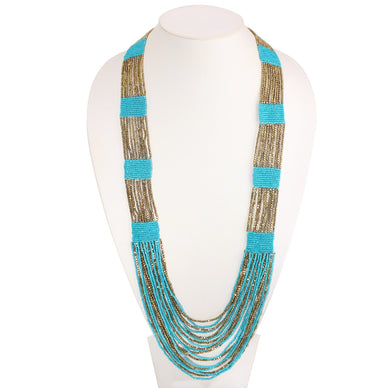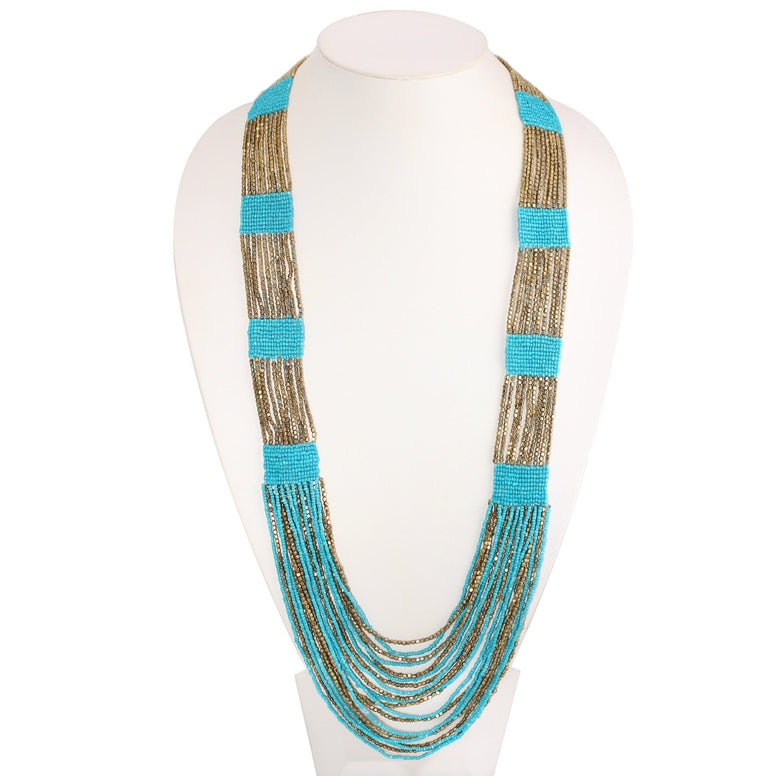 Gold And Turquoise Seed Beads Long Layered Necklaces