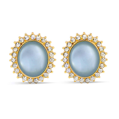 Gold-Tone Metal Ashley Blue Moon Stone Rhinestones Crystal Stud Earrings