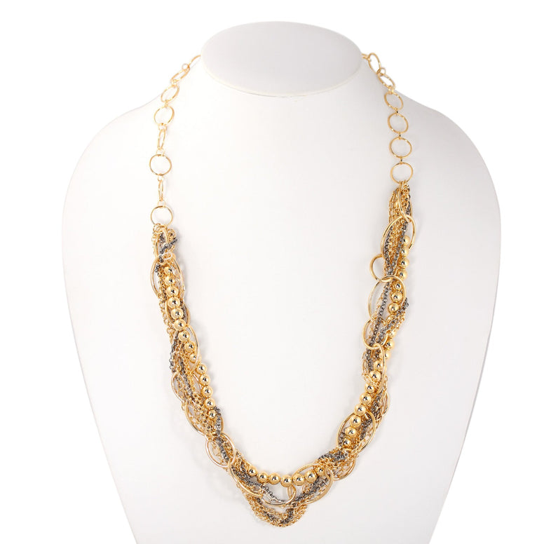 Gold-Tone Metal Beads And Multi Chains Adjustable Lobster Claw Closure Layered Necklaces
