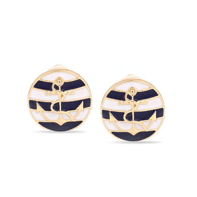 Gold-Tone Metal Anchor Black And White Clip On Earrings