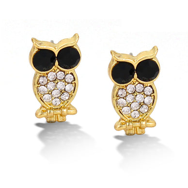 GOLD BLACK AND WHITE CRYSTAL OWL STUD EARRING #SWKK-3372GLD (AH19)