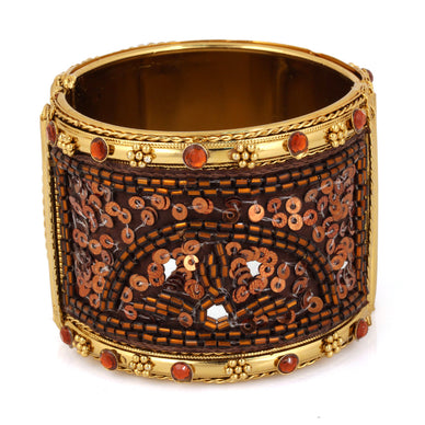 Gold Champagne Beads And Crystal Indian Cuff Bracelet