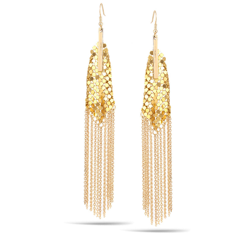 Gold-Tone Metal Chandelier Long Tasesel Earrings