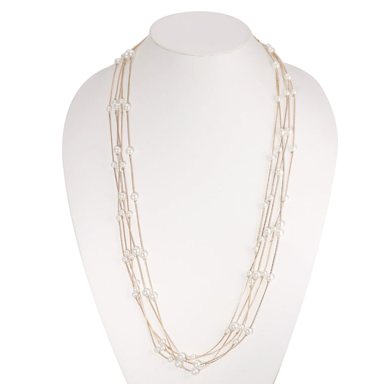 Gold-Tone Metal Cream Pearl Adjustable Lobster Claw Closure Layered Necklaces