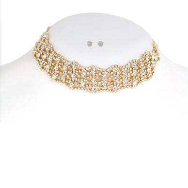 Gold-Tone Metal Crystal Earrings And Adjustable Lobster Claw Closure Choker Necklace