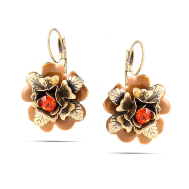 Gold-Tone Metalflower Red Crystal Earrings