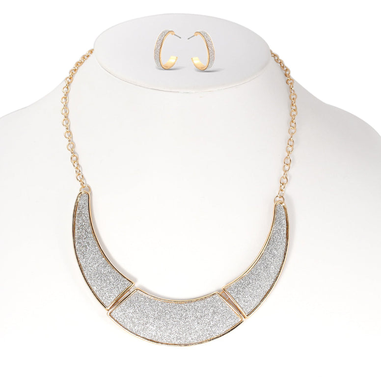 Gold-Tone Metal Glittering Earrings And Adjustable Lobster Claw Closure Necklaces