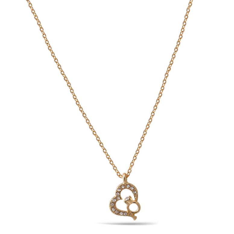 Gold Heart And Ring Crystal Small Pendant Adjustable Length Chain Necklace