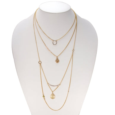 Gold-Tone Metal Layered Charms Adjustable Lobster Claw Closure Necklace